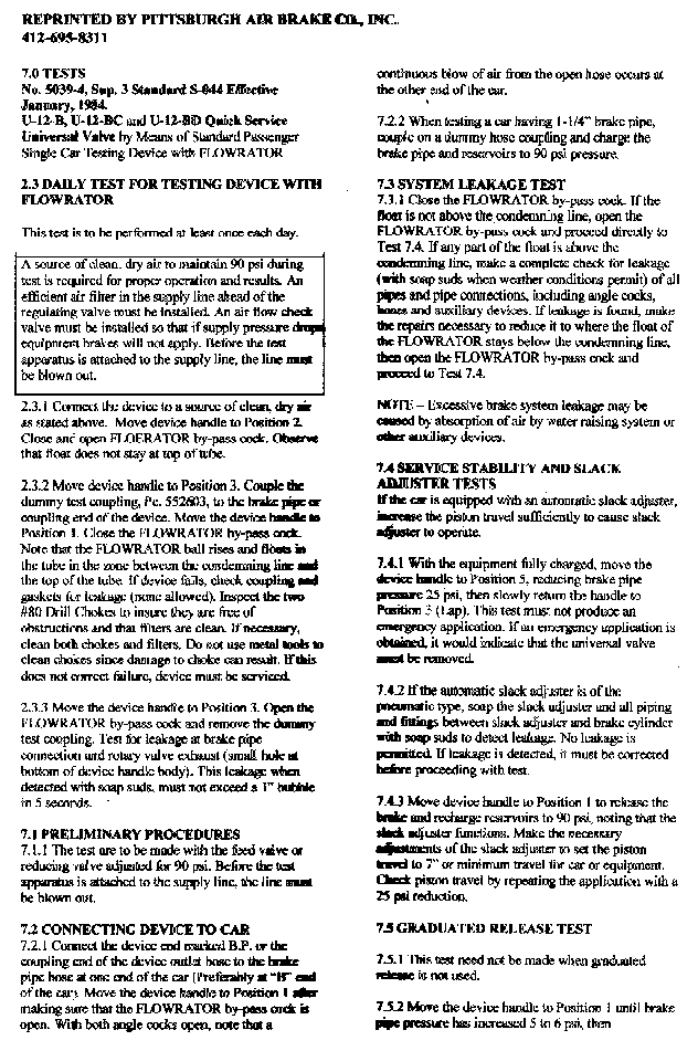 Title # Company Date Comments LN Passenger Car Air Brake Equipment 5034 WABCo April 1936 original Code of Tests, Triple Valves on 3-T Test Rack 5039-3 WABCo December 1937 copy Feed Valves